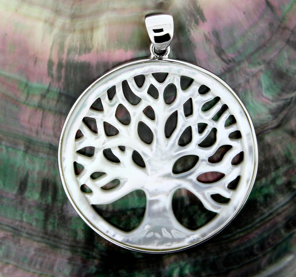 Pendentif "arbre de Vie" en argent 925 rhodié et nacre d'Indonésie